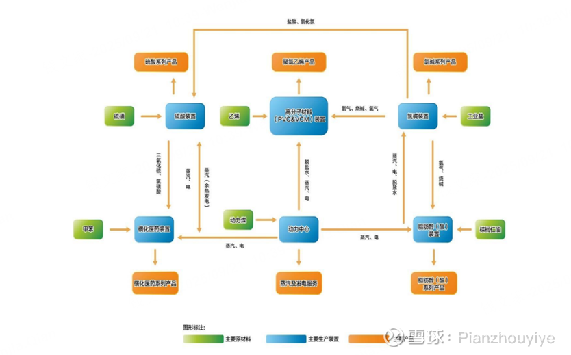 公司以热电联产为核心和源头,所构建的化工产品和能源循环利用的多元化产品链之间的关系如下图所示:(来源公司历次的财务报告截图)