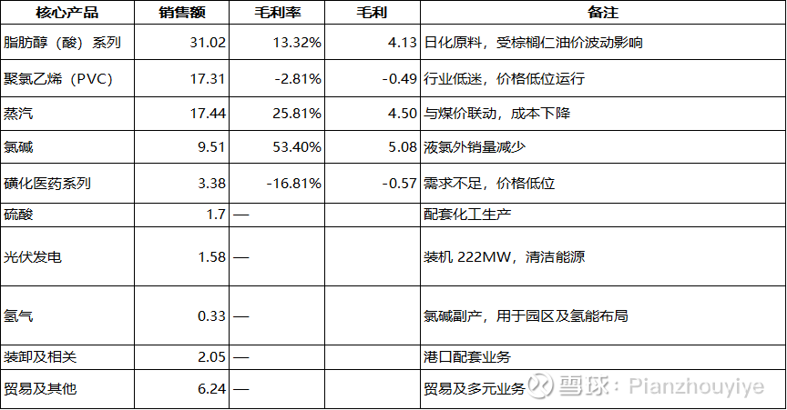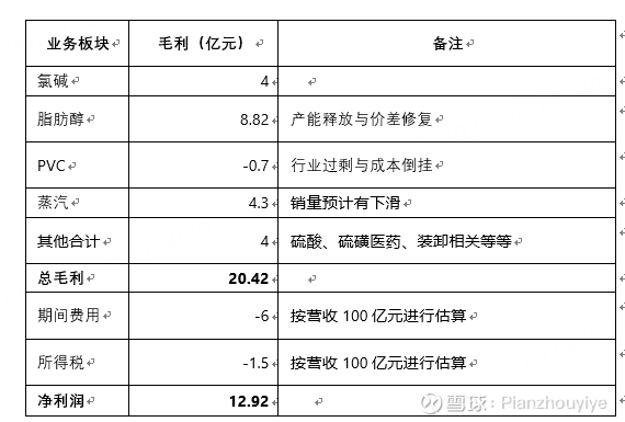 7. 总毛利:由于氯碱部分的业务相对比较复杂了,由于售价是烧碱折百后烧碱和氯气的双吨价格,所以不太好计算具体差价,整体采用半年报的数据大概2025年全年毛利在4亿左右。