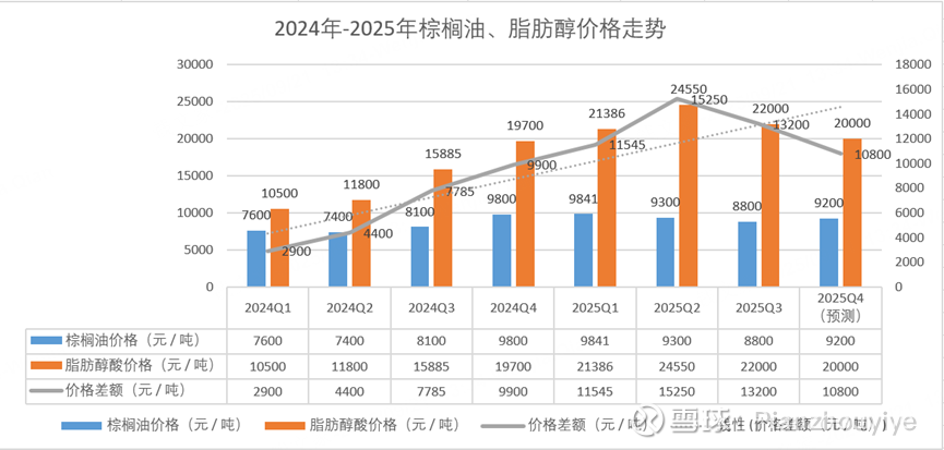 2024年-2025年棕榈油与脂肪醇的价格走势