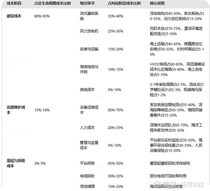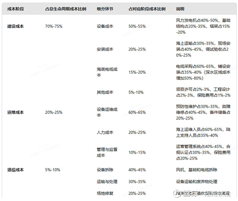 未来,公司计划将服务延伸至安装及运维环节价值量会进一步提升,我们可以大致了解一下欧洲海风全生命周期各环节成本占比,以下表格为大模型提供,仅作为参考(分析框架来源于《2025-2030年欧洲海上风电场建设与运维成本分析报告》)。