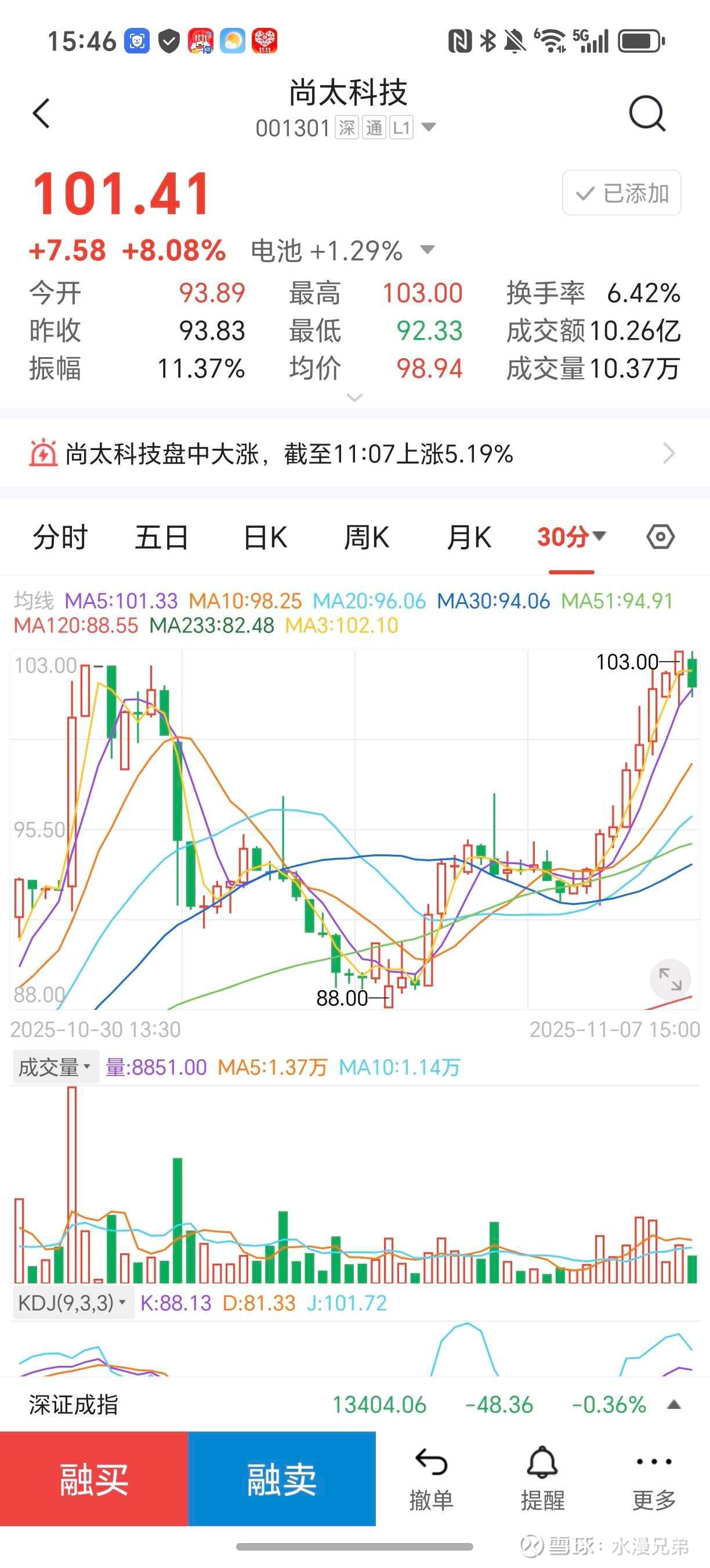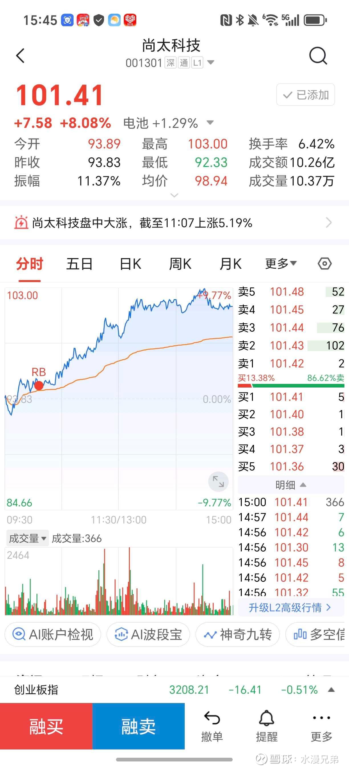 要解释明白2次买点,可以用到我今天的一个短线操作案例。$尚太科技(SZ001301)$