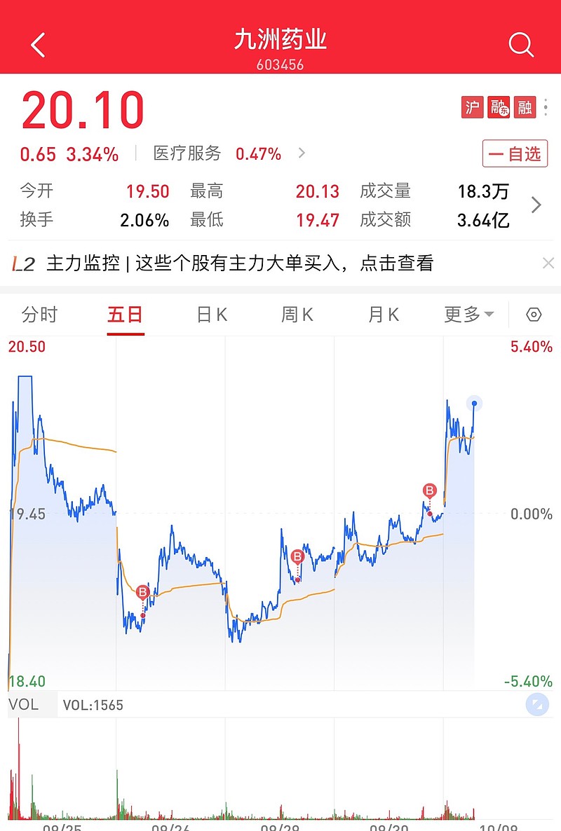 $九洲药业(SH603456)$
