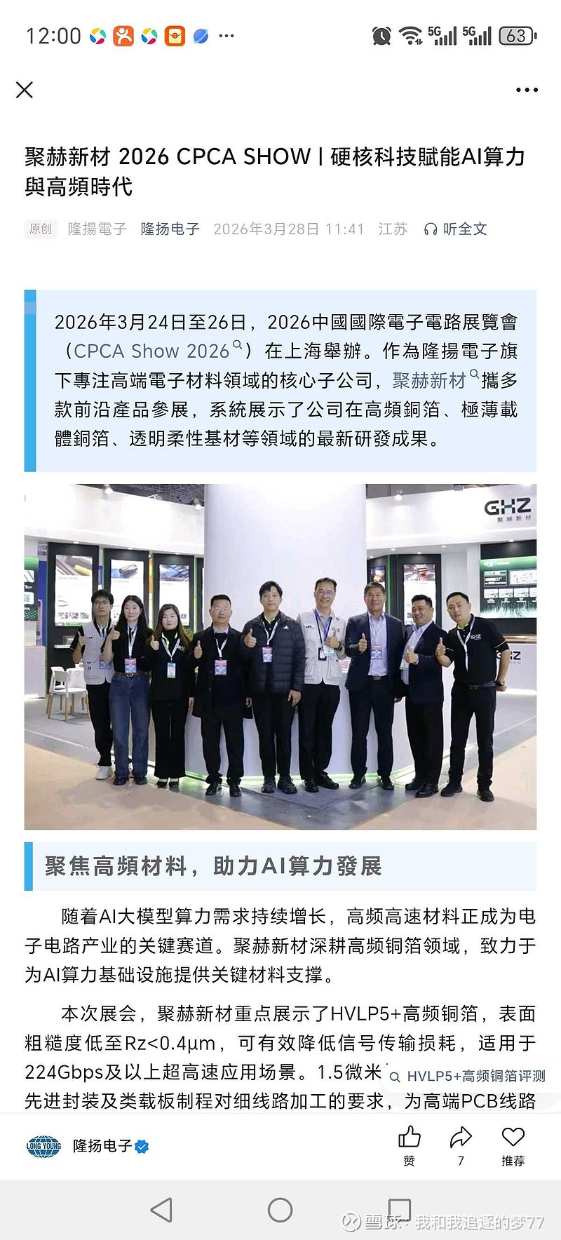 $隆扬电子(SZ301389)$ 聚赫新材在高速材料領域持續投入,積極配合下游客戶對產品的送樣驗證,#第一個細胞工廠建設完成、目前配合部分客戶生產少量樣品訂單。公司將根據市場節奏、有序推進後續細胞工廠的建設進程。