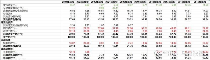 1、 近年不断扩张的长短期负债,回到化工重资产路径上,固定资产和在建工程夸张占比近64%,这个固定资产比例远高于传统意义的化工!长期看数据也是如此。