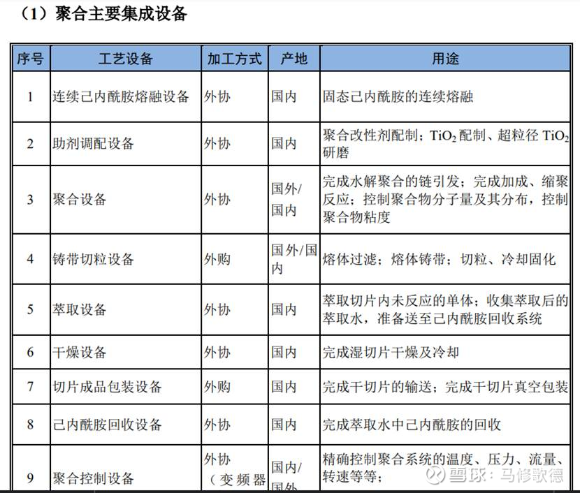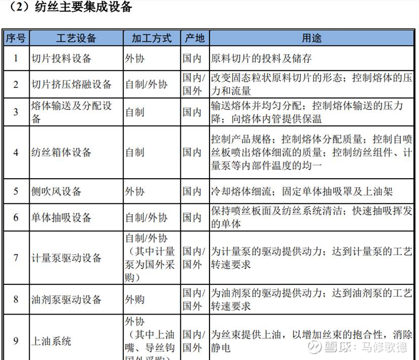 上市初期,发行人的聚合项目和纺丝项目中有相当一部分主工艺非标设备采取外协 生产方式提供,2011 年、2012 年及 2013 年发行人外协设备成本占当期主营业务成本比例分别为 45.30%、46.31%及 42.62%。即使到了2024年报,谈到关键设备集成优势时,关键设备仍需要国际采购!双元科技在生产时,核心设备均自制,这点差别相当大!