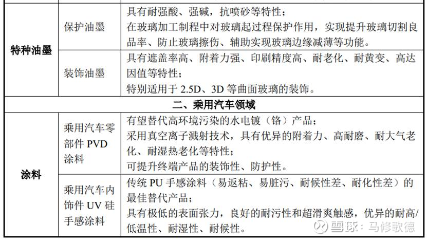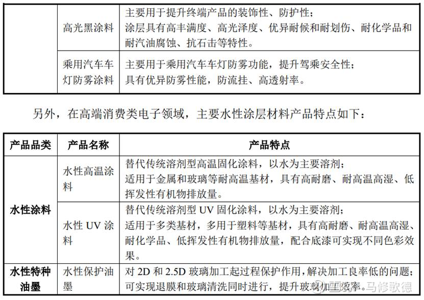 公司上市初拥有涂料、特种油墨两大类新型功能涂层材料产品,未来还将通过募集资金建设环保型胶黏剂项目。