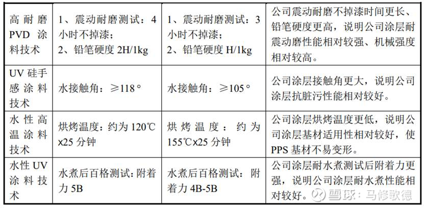 公司配置四条恒温恒湿的 SPINDLE 自动喷涂线体,一套双轴往复机自动喷 涂线,能够全方位模拟客户产品使用场景,保障研发输出与客户需求的一致性。公司装备 PVD 镀膜机、等离子表面处理机、光学镀膜机、激光镭雕机、数控雕刻机(CNC)、UV/UV-LED 固化设备、IR 隧道炉、高精度丝印机、曝光显影成套设备等工艺研发设备,全过程重现客户制造工艺场景,保障研发输出与客户制程需求的一致性。 公司配备先进的表征设备和理化仪器,包括气相色谱、荧光分析仪、色谱仪、流变仪、3D 光学金相显微镜,确保研发过程中原材料、半成品、成品分析的微观和精准,保障研发结果的可靠性。 公司购置 QUV/氙灯老化仪、高温高湿仪、高低温冲击仪、盐雾老化机、RCA 耐磨仪、震动耐磨仪、马丁代尔耐磨仪、接触角测试仪、色差仪、表面粗糙度测试仪等先进涂层性能检测设备,保证与客户测试过程一致,测试结果准确可靠。——通常检测设备才能给产品定性,松井在原料、半成品就做精准和微观,这一步会领先不少企业;同时模拟客户使用场景,这点非常重要,真正站在客户角度想问题,产品虽然检测达标,在实际使用中效果不佳是可能存在的,这一步可以燃起投资者的小宇宙!