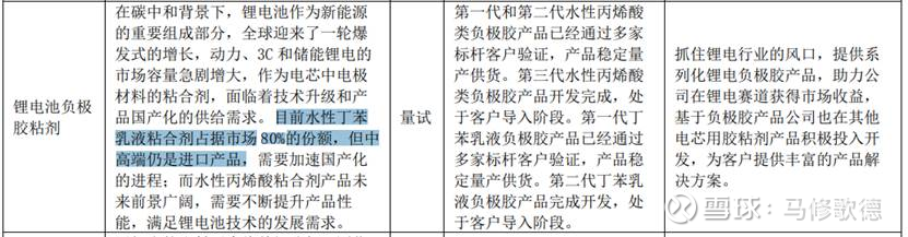 报告期内,光伏行业方向,公司匹配钙钛矿、异质结等行业变化,顺利完成系列产品线的储备与布局,多家客 户验证通过;在消费电子材料和板级材料方面,公司竞争力逐步增强,导热灌封胶、三防漆、UV延迟胶、大尺寸芯片EB胶等系列产品已居于国内领先水平;汽车电子导热凝胶/硅脂/灌封全面上量,锂电PACK用胶产品线均已齐备,负极胶实现稳定交付;包装胶快速响应国家环保政策,溶剂、无溶剂,以及功能型水煮、蒸煮等系列产品均已面世,高固低粘产品线快速达成,在客户处实现批量应用。