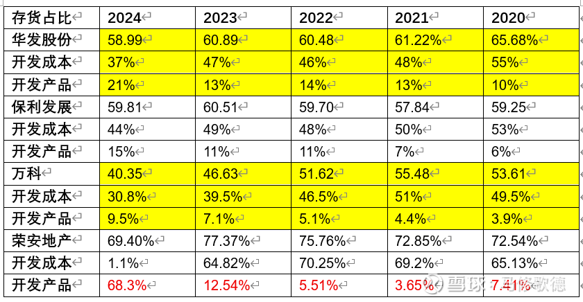 荣安地产作为民营企业,考虑资金链会降低开发新楼盘的风险,保利和华发也降低一定比例,但仍维持开发进度。国企房地产日子会好过些,库存压力保利可能会好些。荣安倒是采用快建、快销,不囤地、不囤房,重点放在建设、产品上,是降低风险的方法,同时也合理给出2024年存货中高比例的完工房产。
