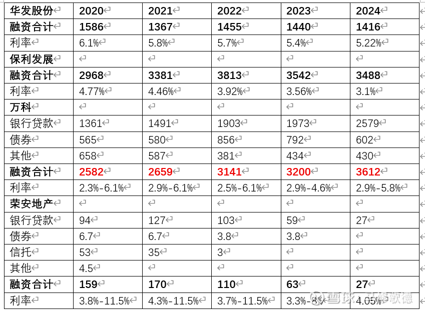结论:如果两图放在一起,那么在2024年万科年报出完,就能感受到万科陷入了巨大的危机,投资性房产和存货受限(抵押)的额度急速在提升,需要注意的,存货房产作抵押,房屋价格下降,账面价值是下降的。在此前提下,万科飙升的数字说明了问题,融资情况也唯独万科仍在增长。