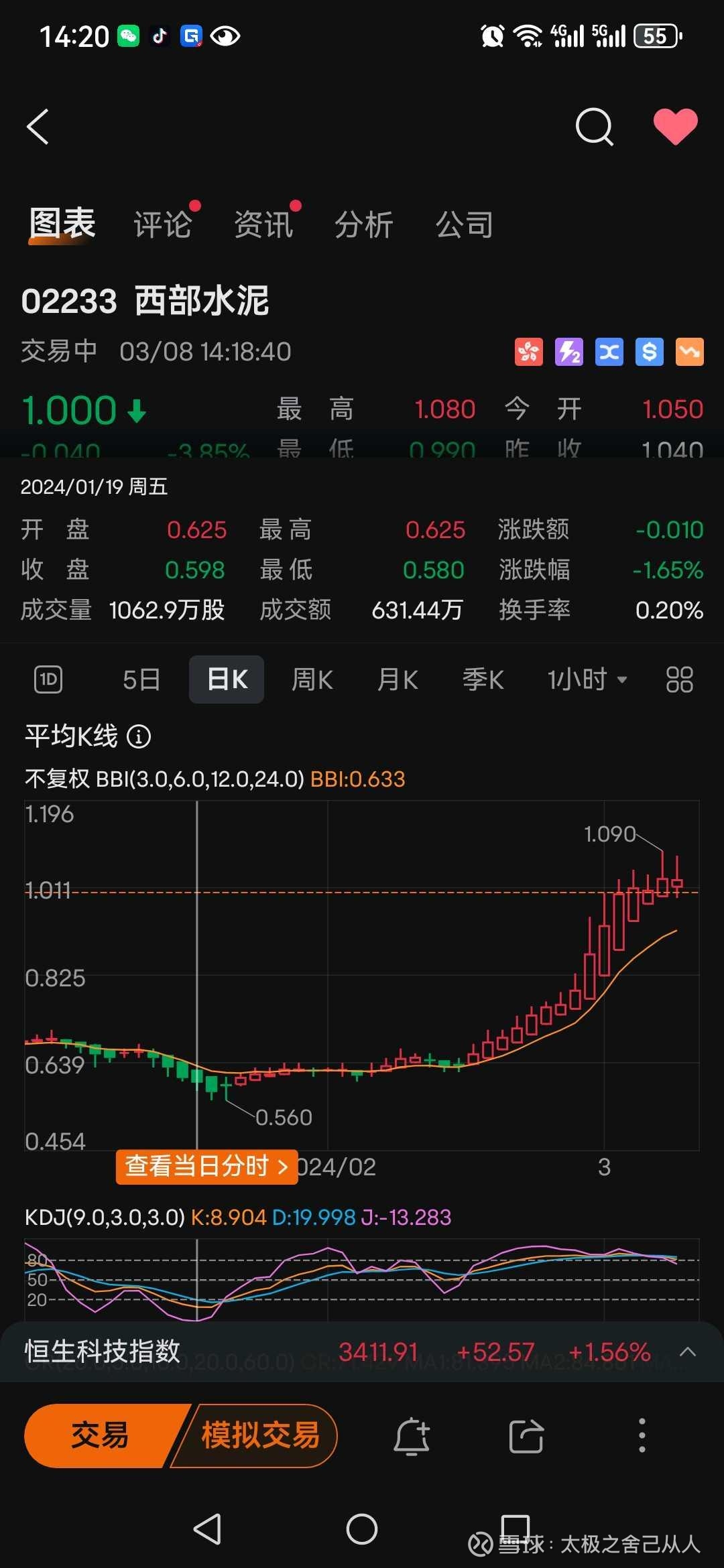 可能有不少人会说,我买过那些好股票,不但没盈利,还亏钱了!但这算是价值投资吗?好股票也得看买入时机,不是任何时候买,都可以盈利的。估值的方式也有好几种,你用对了吗?譬如说2233,都知道房地产形势不好后,水泥需求不旺盛,所以这两年几乎所有水泥股都进入下跌通道,2233更是首当其冲,自2022年春节后一路向下,直至今年一月的最低0.56,不仅是腰斩了,几乎只剩了个零头,这正常吗?