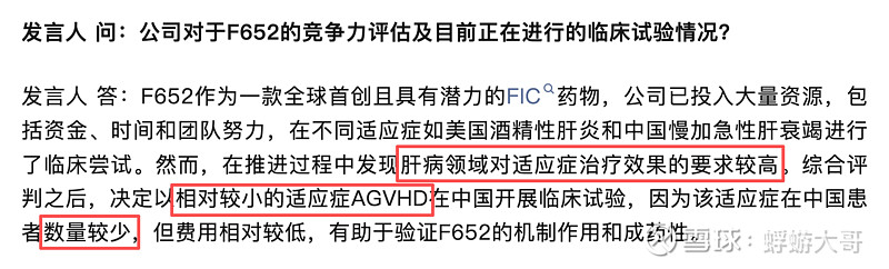 $亿帆医药(SZ002019)$ 看看吧,这是2026元旦前后的调研记录的一部分:652事实上接近失败,酒精肝被迫托孤(托孤是啥意思?就是自己基本不再出钱养了)给美国一个研究者,搞来搞去不敢在国内搞,在美国搞就能搞好了?还是未知数,况且截止现在一年多了都没入组;肝衰竭治疗效果要求高,和CDE商量(求)了一年半,发现自己都对652的治疗效果没信心了,只好暂时不搞了。肝病适应症也是个研发费用粉碎机,多少项目折戟沉沙,最近发生的是凯因科技的派益生治疗乙肝失败,导致研发支出全额计提;移植物抗宿主病,是个小适应症,他们自己也知道,硬着头皮搞吧,看得出来,亿帆就是不想早做了断。5年前被机构吹、紧接着股神接棒继续吹、吹到银河系的“药王潜质”的652,如今沦为乞丐了。