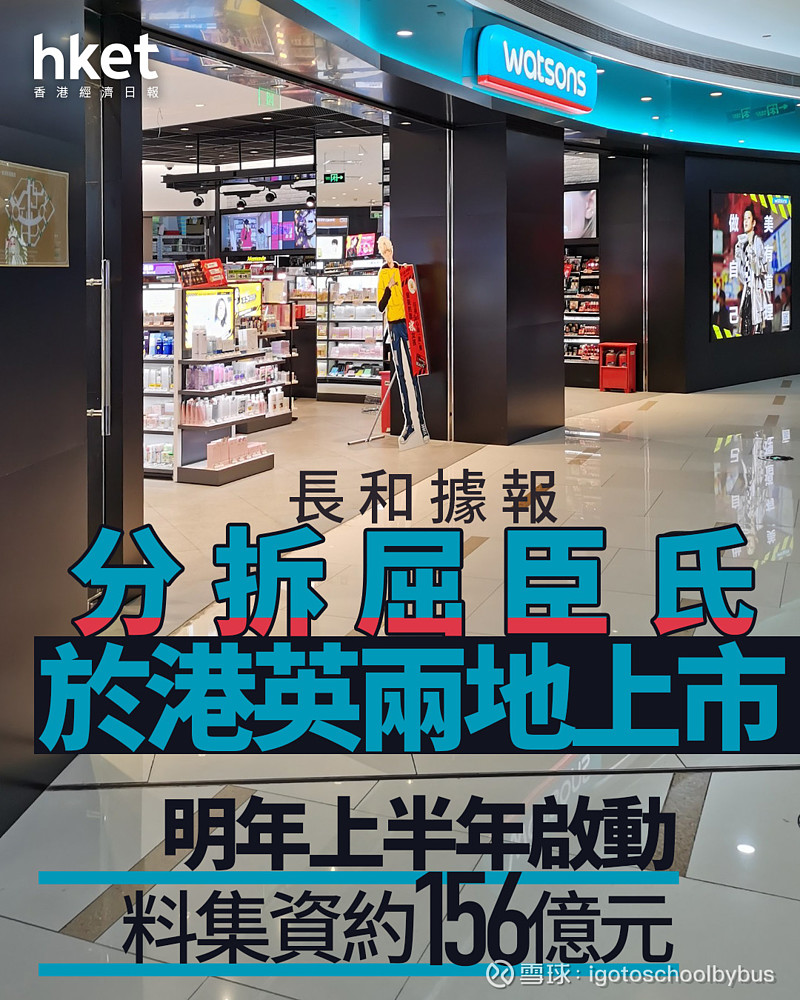 長和系|長和據報分拆屈臣氏於香港及英國兩地上市 料集資約156億元、明年上半年啟動IPO