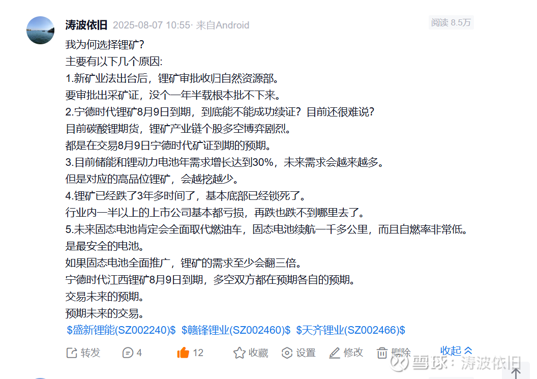 有人问我关于盛新锂能的逻辑。