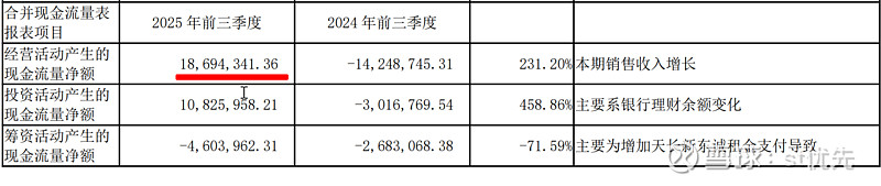 前三季度经营现金流已转正: