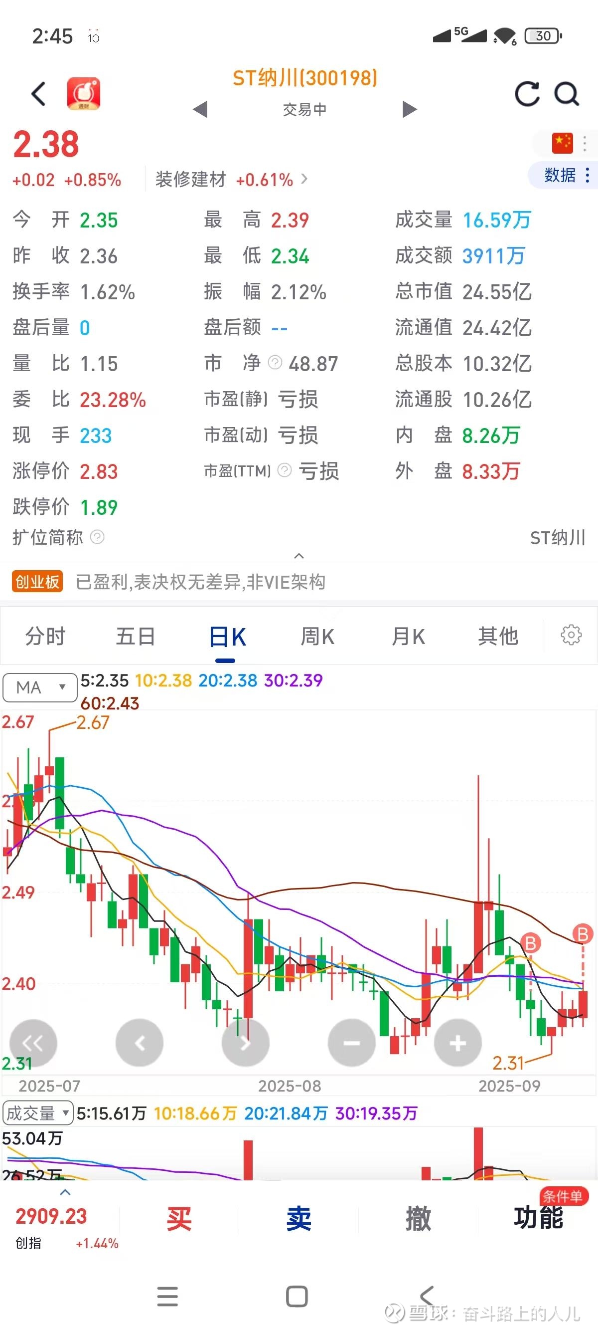 今天看了下这个$ST纳川(SZ300198)$ 股价低位+高管减持(明面属于利空),希望猪力不是可以刻意而为之…那我再加仓一笔;纯属给他找补而已….#我是左侧交易者#