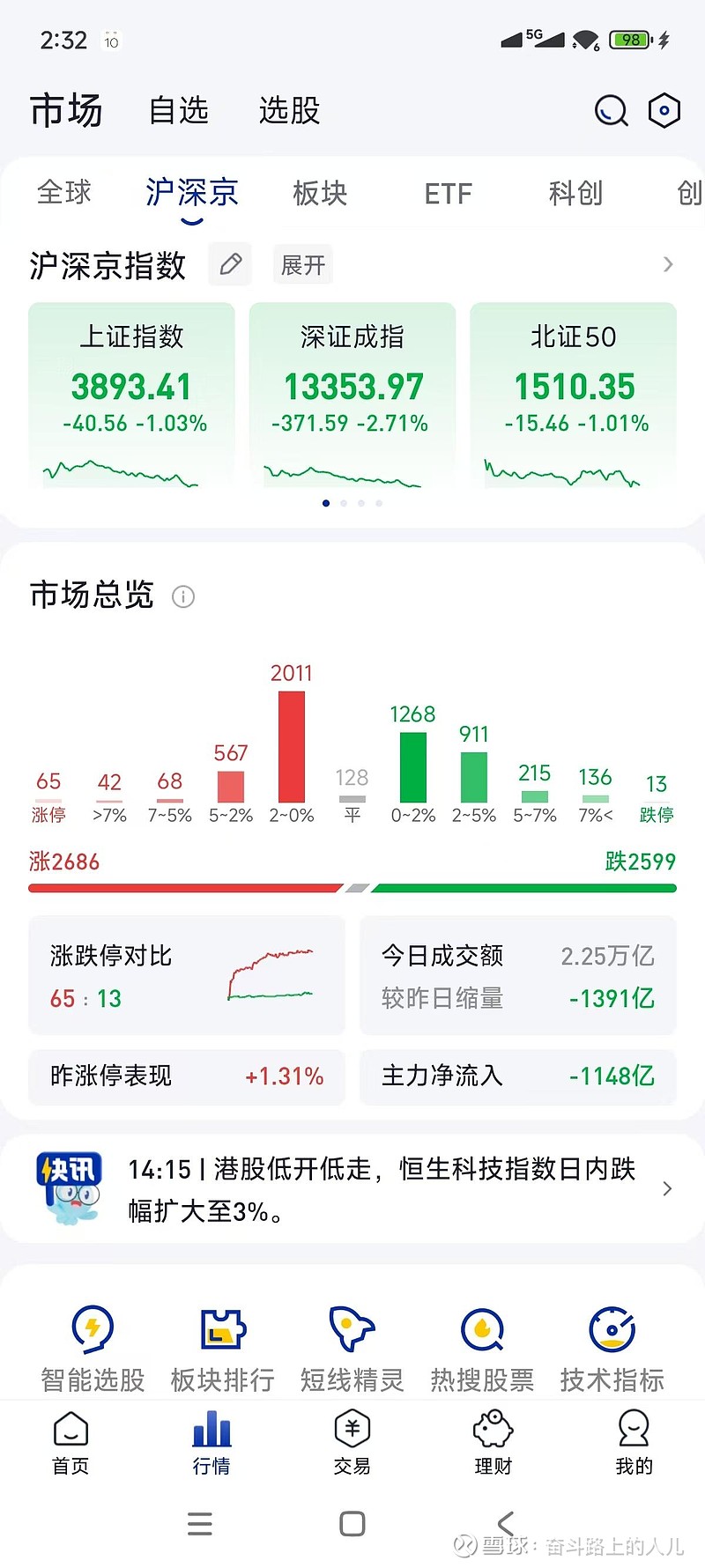 (BJ920765)$ 其实今天下跌挺友好的,虽然大盘跌了1%,但都是跌了前期大涨的半导体等高科技高位票;其余的板块还只是微调。
