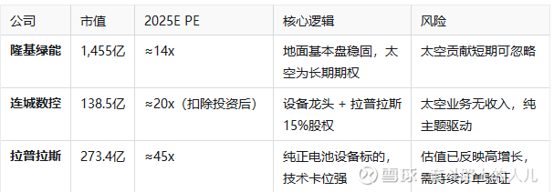 隆基绿能虽弹性小,但作为技术定义者,是太空光伏长期价值的“压舱石”。