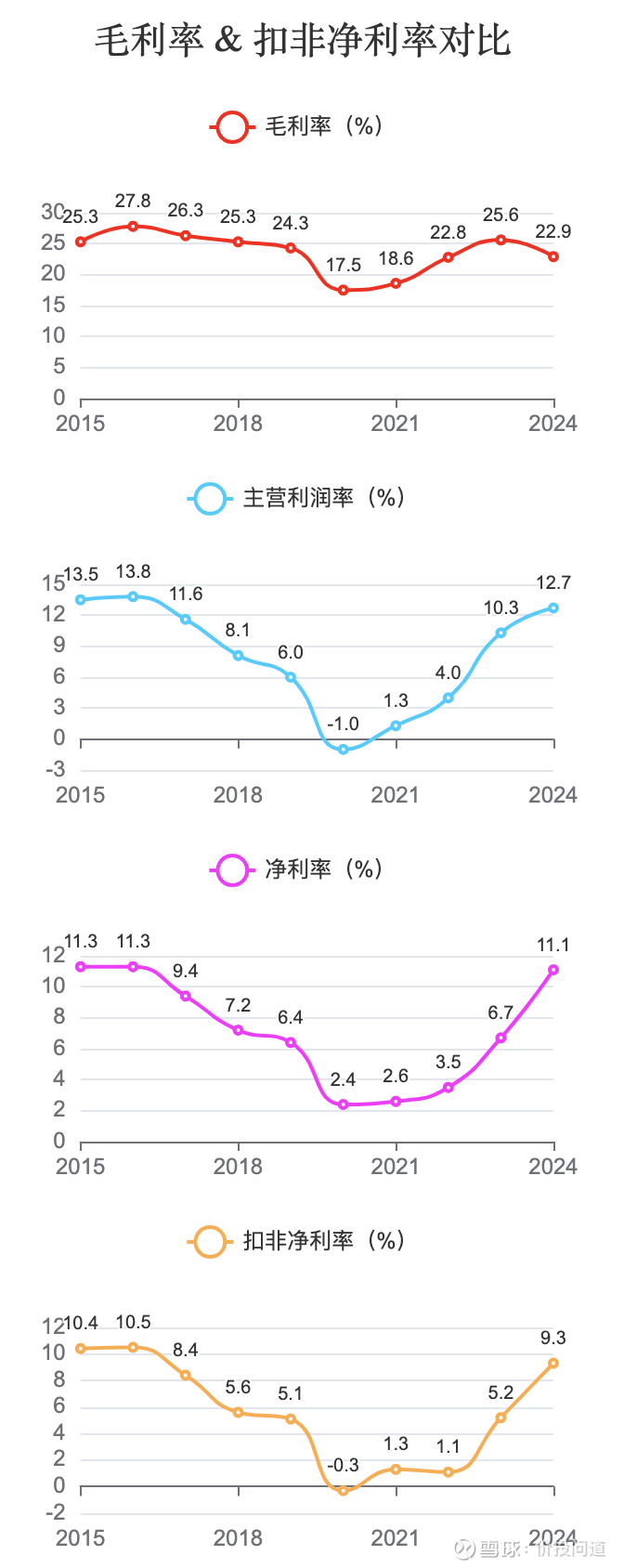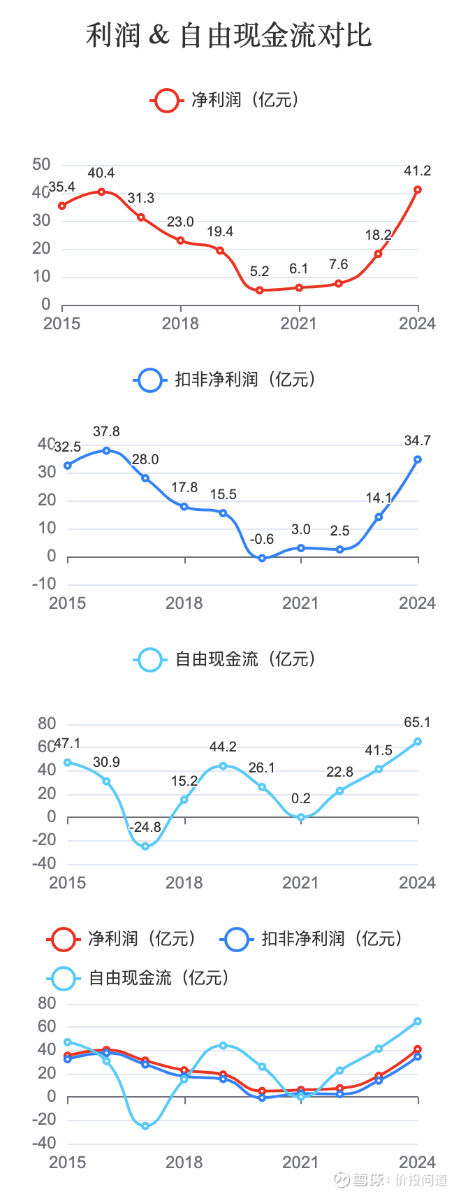 到2024年,营收372亿、净利润41亿、扣非净利润34.7亿,均已恢复甚至超过2016年的水平。