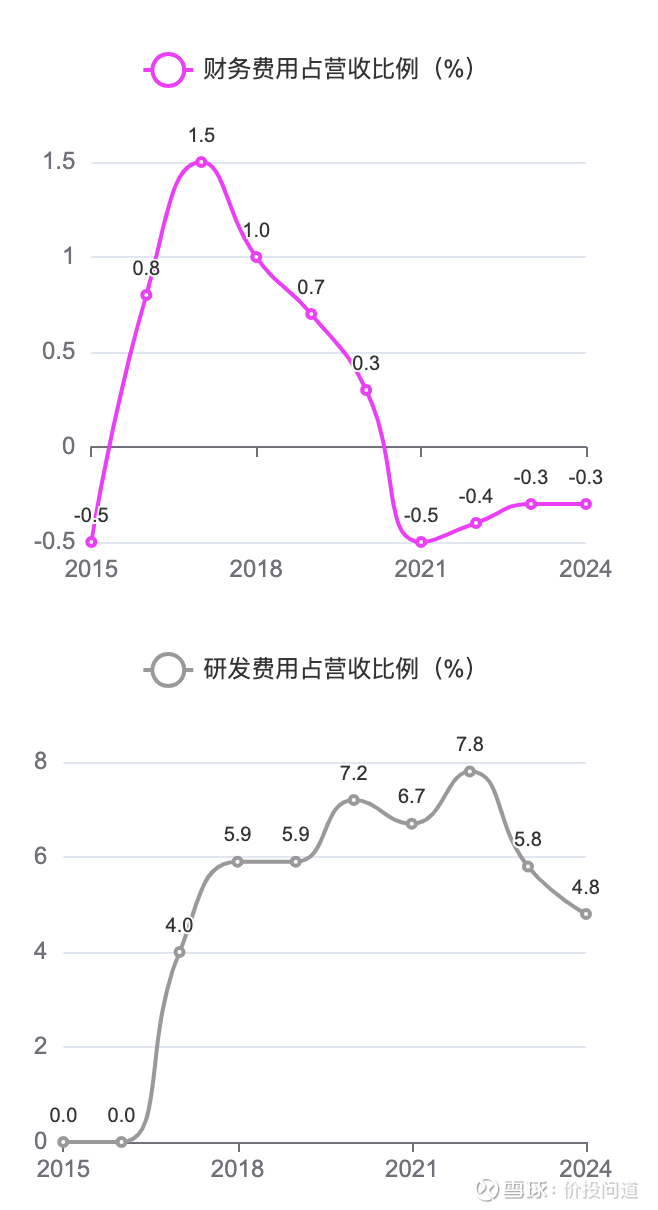 销售费用占比从7.5 % 降至3.6 %。销售投入占比减少是好现象,说明品牌的竞争力在提升。