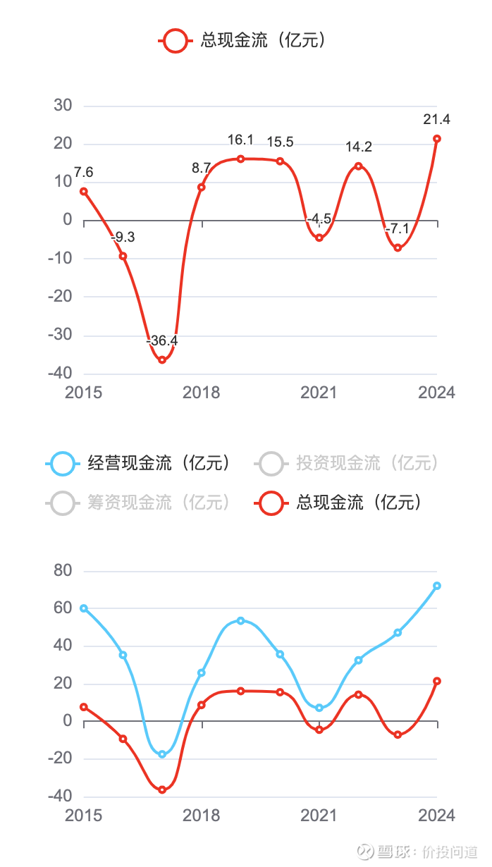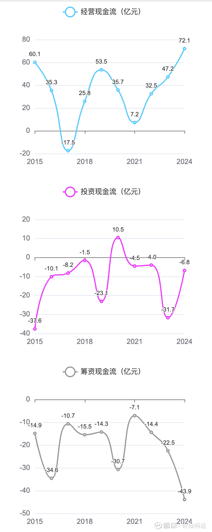 2024年经营现金流净额72.1亿,结合之前盈利分析中提到的净利润41.2亿,净利润的现金含量约175%,利润含金量是很高的。