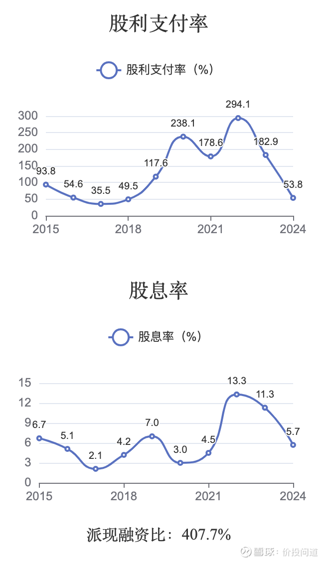 派现融资比407.7 % ,意味着公司自上市以来,累计分红的总金额是其从资本市场累计融资总额的4倍多。