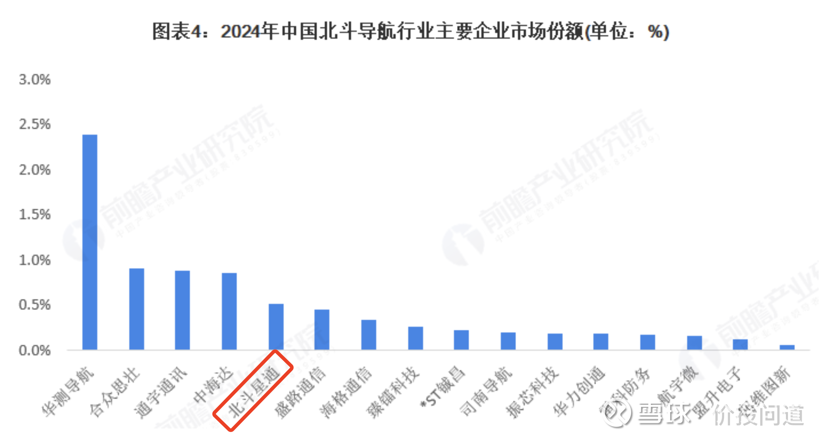 目前我国北斗导航市场集中度非常低。前十家的市场份额合计仅为7%左右。行业仍处于充分竞争阶段,尚未形成垄断性或寡头性市场结构。