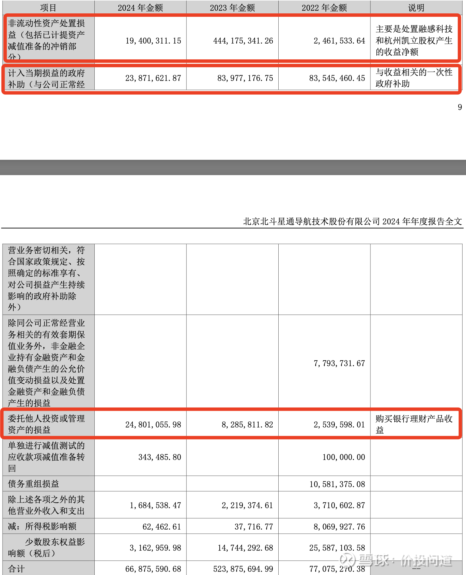 扣非净利润比净利润表现更低。根据2024年的情况,非经常性损益主要来自处置资产、政府补贴和银行理财。这几项都不是长期可靠的收入,还是要观察主业的盈利能力。