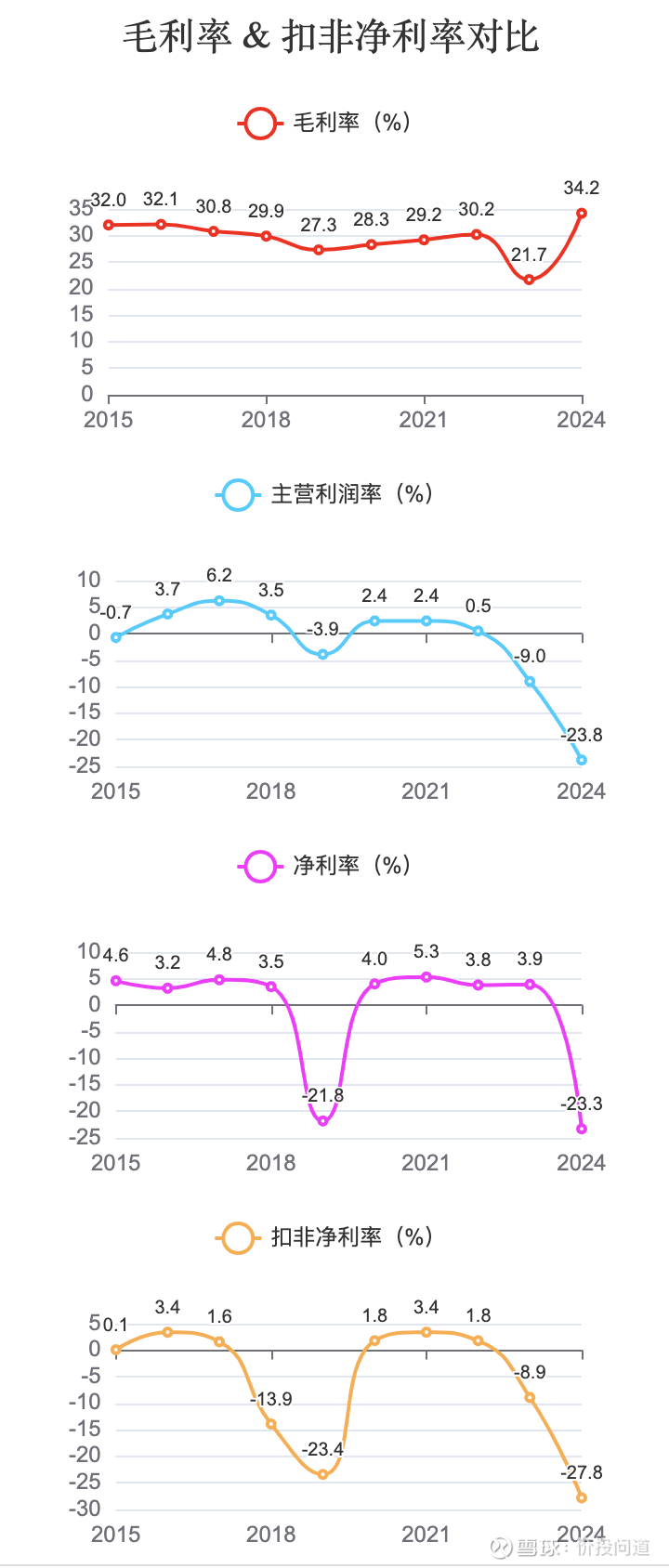 抛开利润为负数的年份不说,往年基本上是净利率不超过5%,扣非净利率不超过3%。赚钱十分辛苦,只能获得一点微薄的利润。