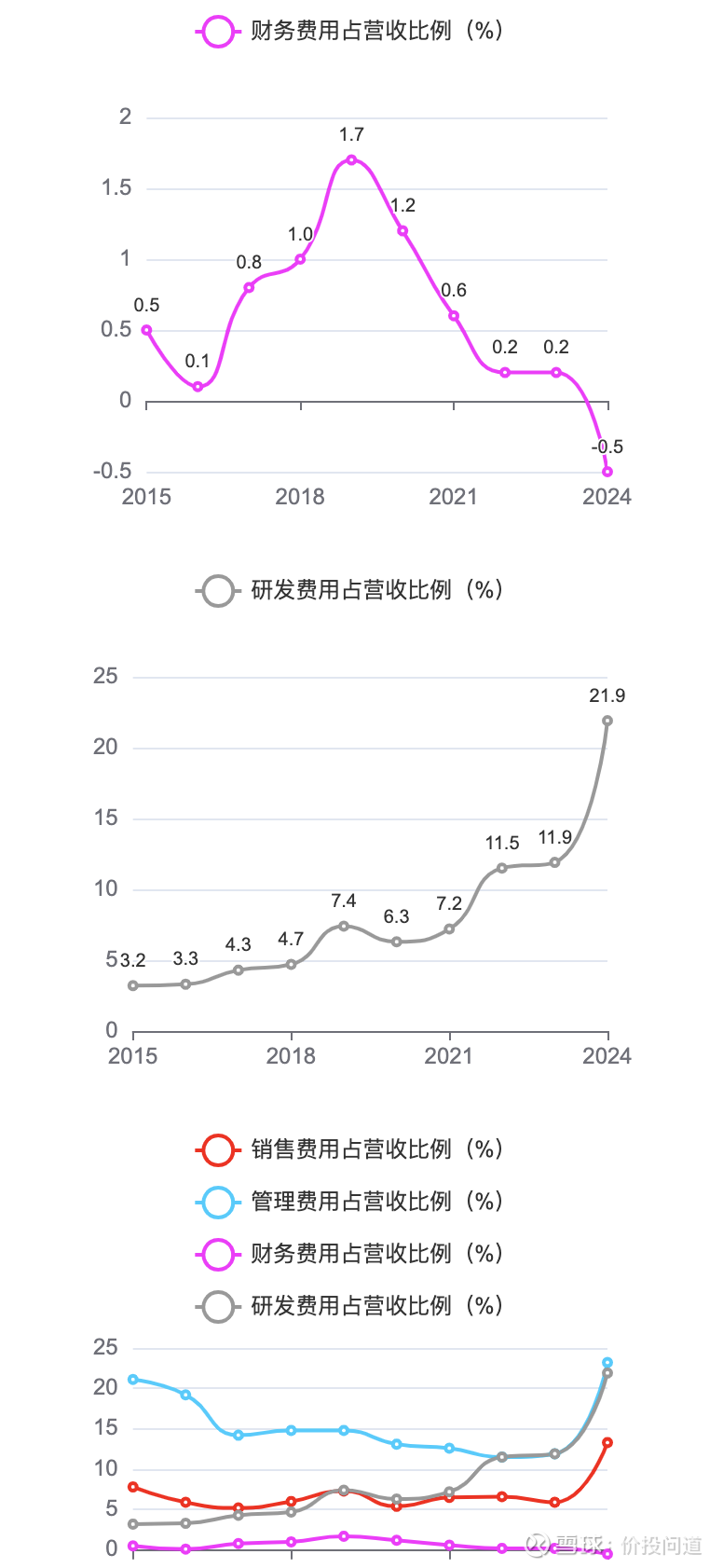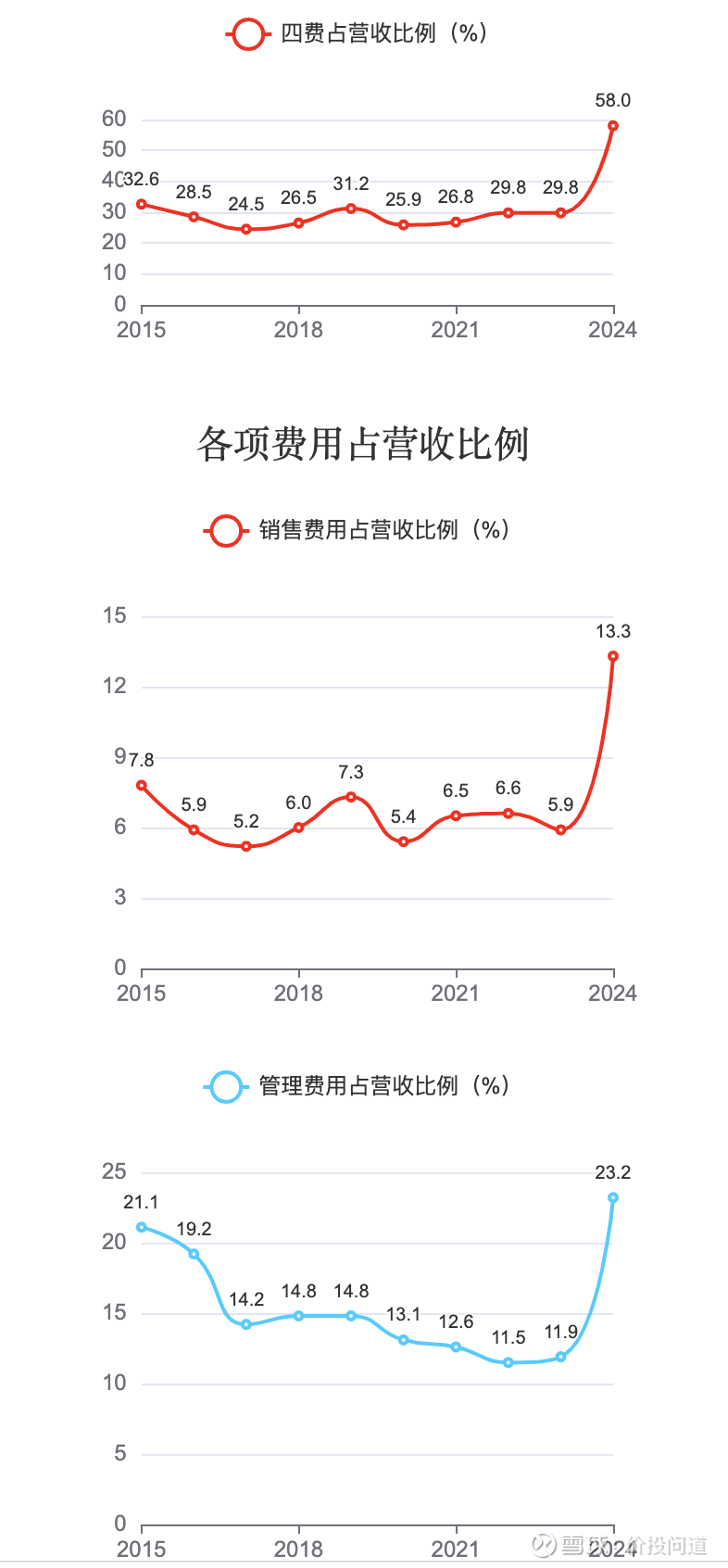 2024年,由于汽车电子业务的剥离,营收大幅调整。四费占营收的比例也就相应变得非常高。这种业务调整带来的比例变化,不太能说明情况。我们看往年平均水平参考一下。