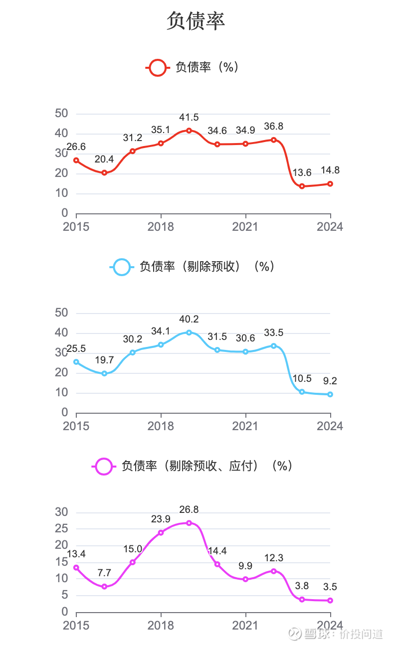 负债率14.8%,很低。剔除预收、应付之后,负债率仅有3.5%,没什么负债风险。