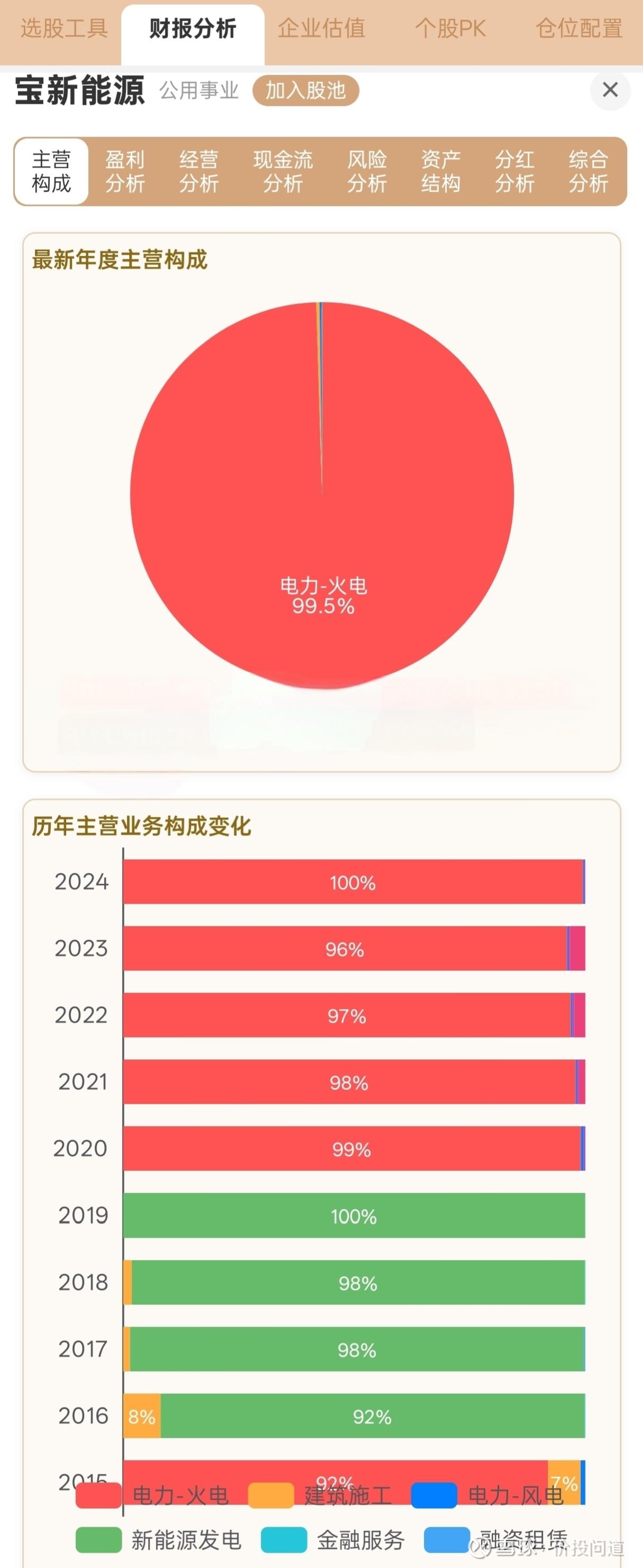 $宝新能源(SZ000690)$ 是一家火力发电企业。从主营构成上看,2019年以前,完全是做新能源发电的,2020年以后,完全变成了做火力发电的。然而,这并不是一次业务转型,而是一次“脱掉马甲”的财务统计口径修正。