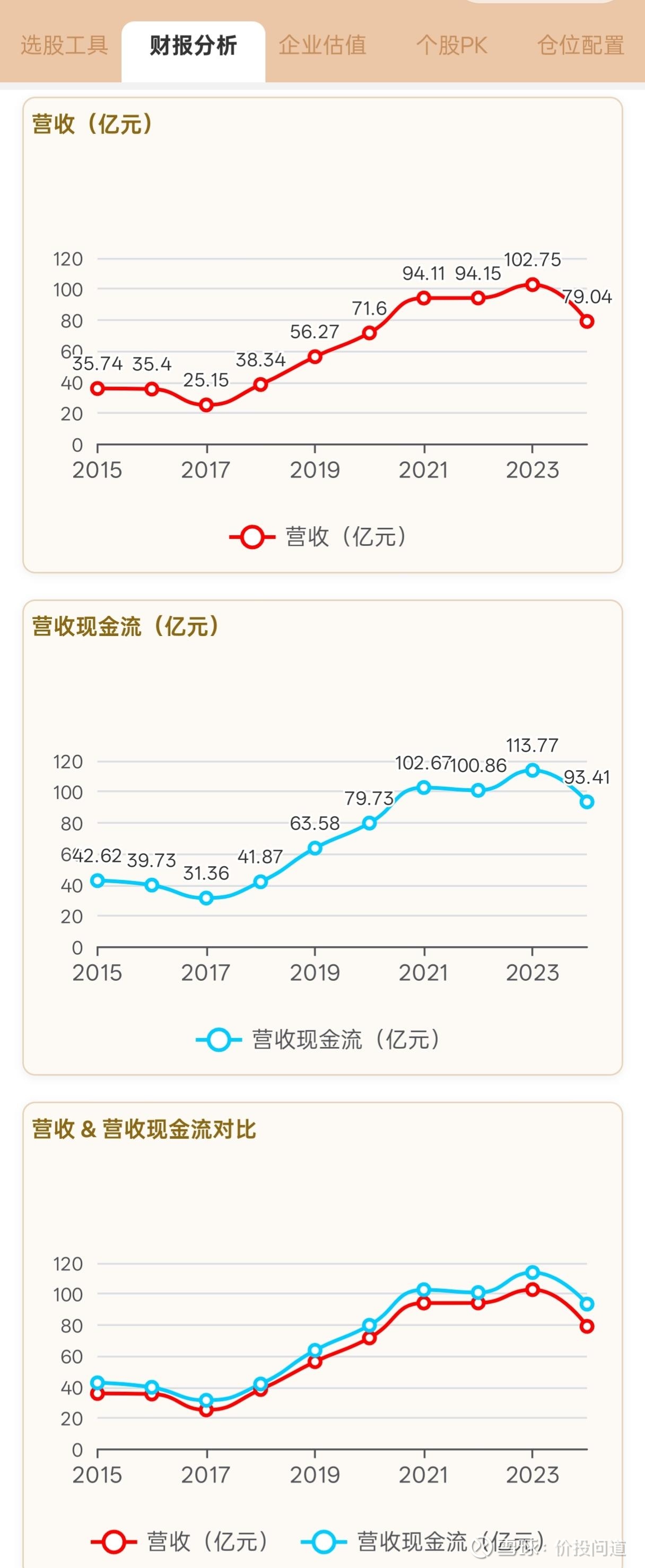 营收稳定增长,到2024年有下滑。营收现金流略高于营收,营收含金量不错。