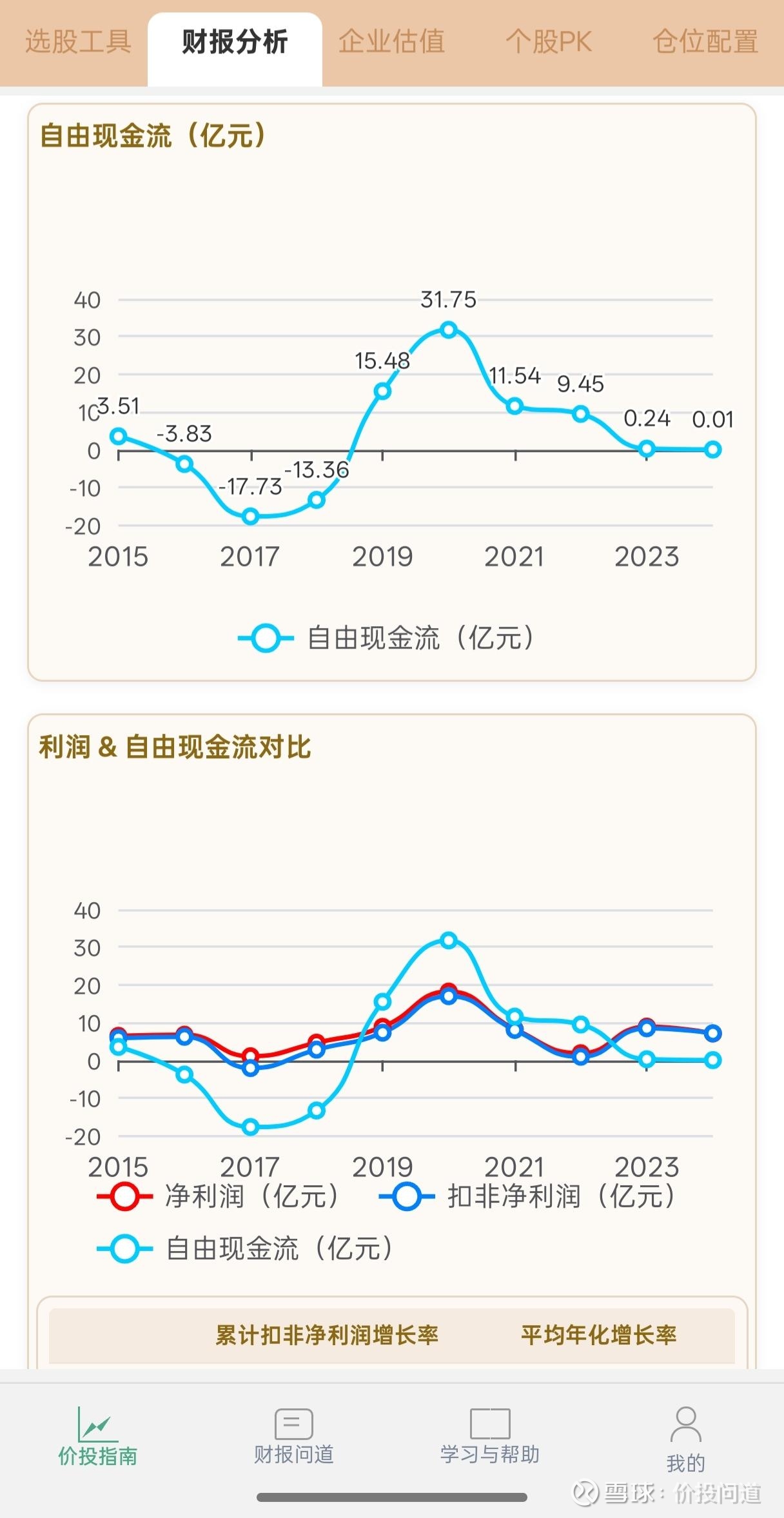 自由现金流围绕净利润上下波动,但多数年份低于净利润。