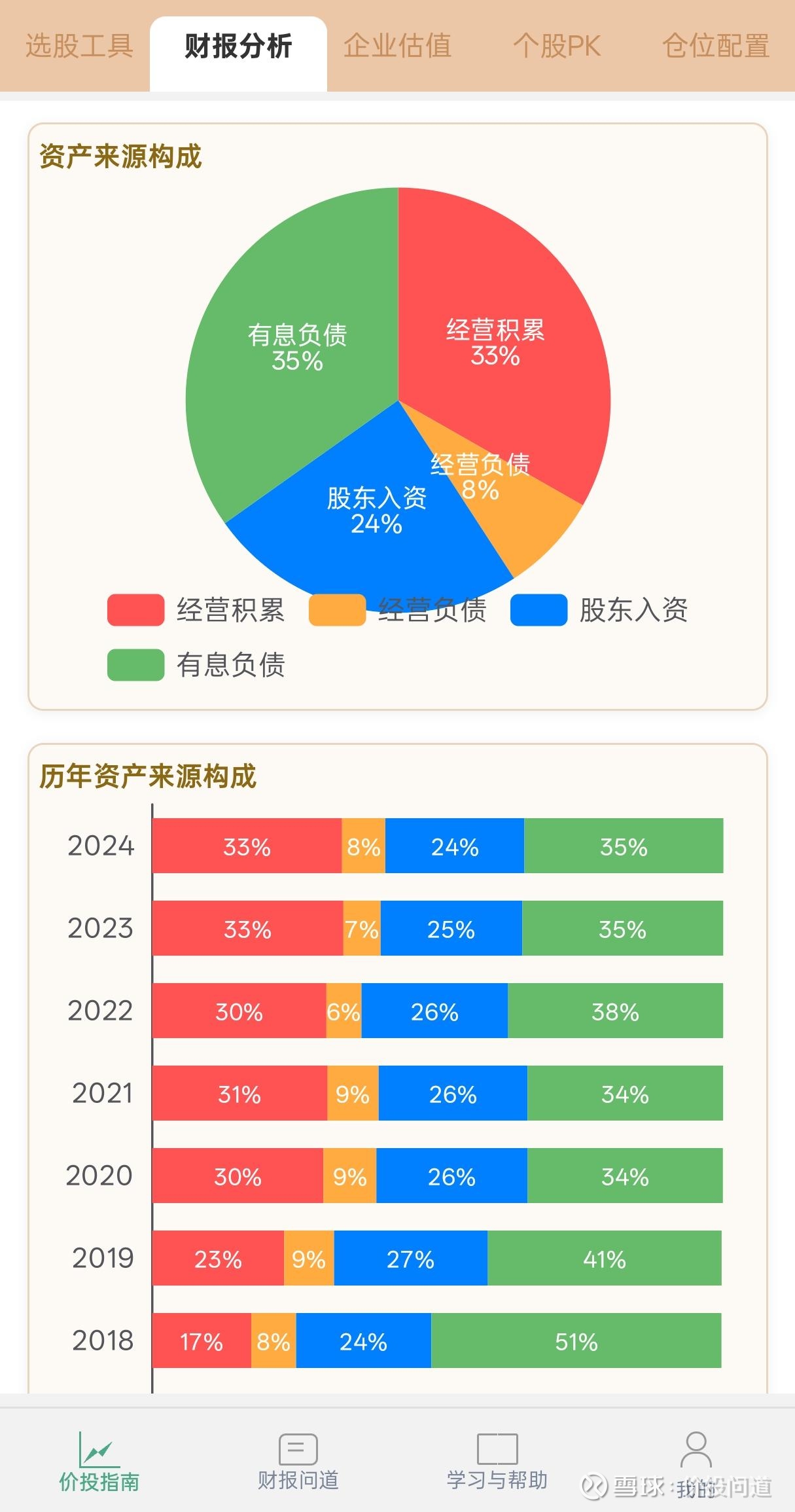 从趋势上看,经营积累占比有所增加,有息负债占比有所降低。