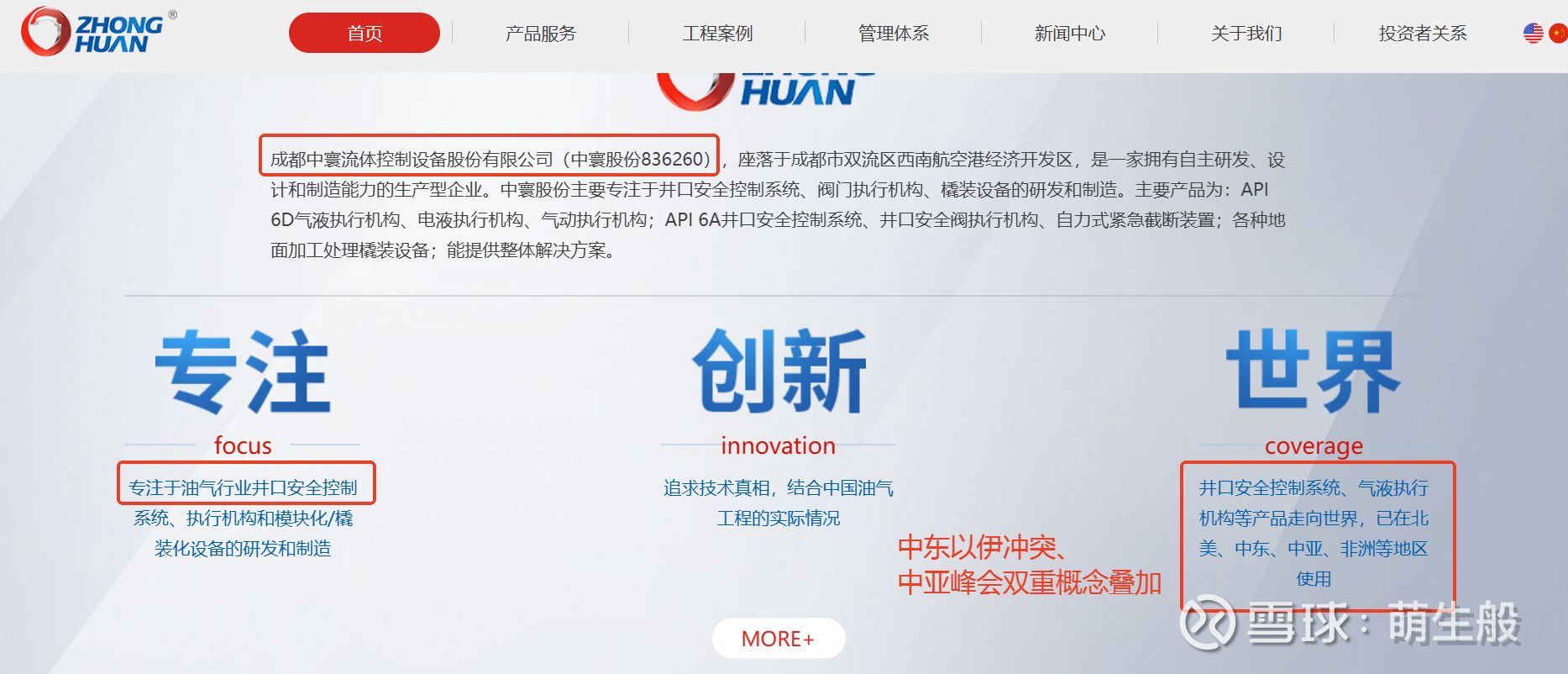 专注于油气行业井口安全控制系统、执行机构等设备!并且在中东、中亚等地区都有使用!可以说中东以伊冲突和16-18号中亚峰会的双重题材叠加!