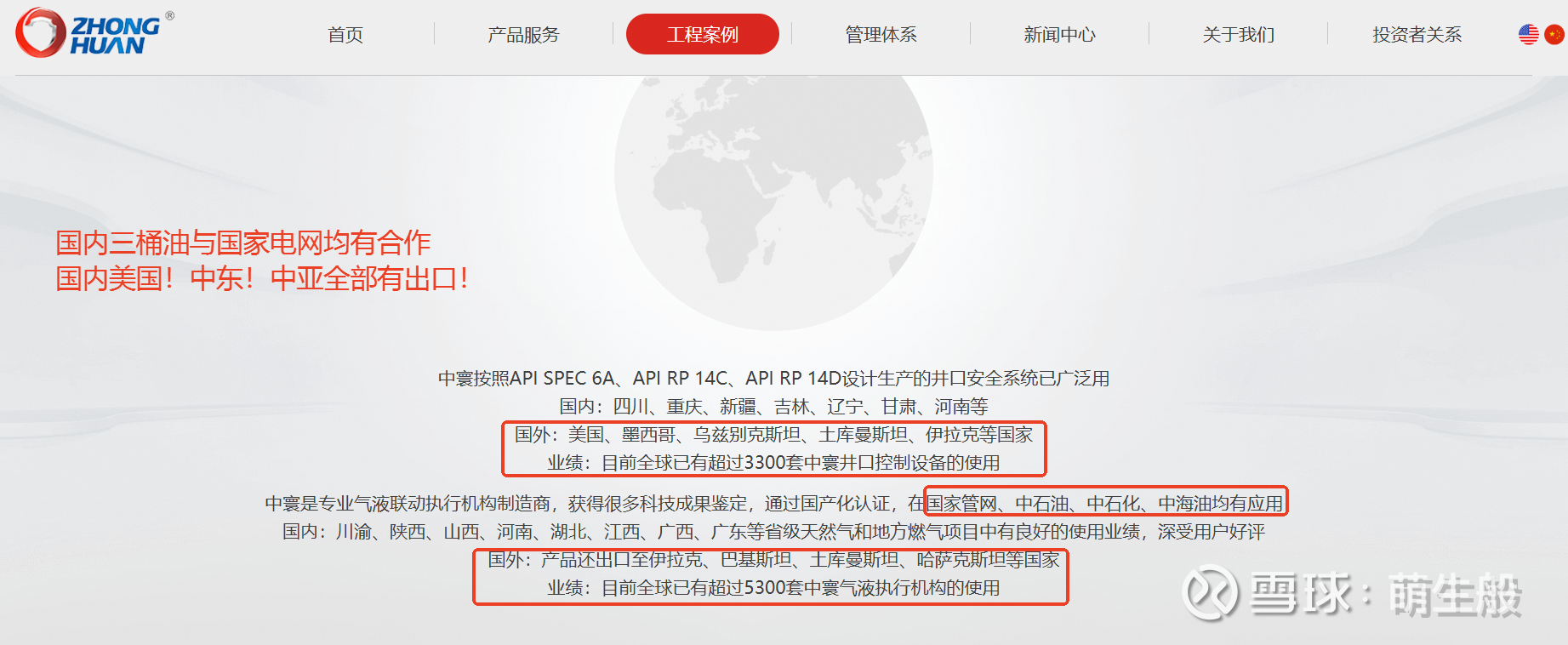公司的产品不仅是国内国家电网、中石油、中石化、中海油的供应商、而且国际市场也非常有品牌实力和案例,出口美国!哈萨克斯塔(本次中亚峰会国)、伊拉克、阿联酋等中东国家!受益中亚峰会之后,中国加大对中亚国家的油气资源开发!