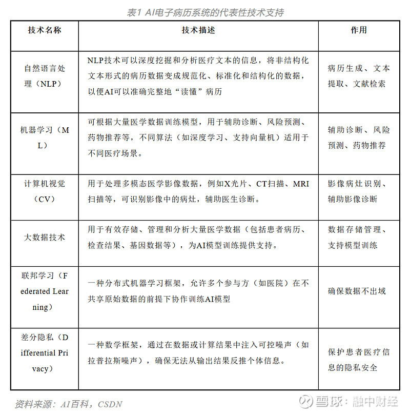 除此之外,机器学习(ML)、计算机视觉(CV)、大数据等几项核心技术也为AI电子病历系统提供了支持,而联邦学习与差分隐私等学习框架保障了患者医疗信息的隐私安全。