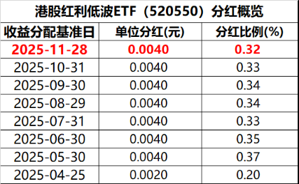 消息面上,近期$港股红利低波ETF(SH520550)$ 及$中证红利质量ETF(SZ159209)$ 12月10日同步发布12月分红评估结果。