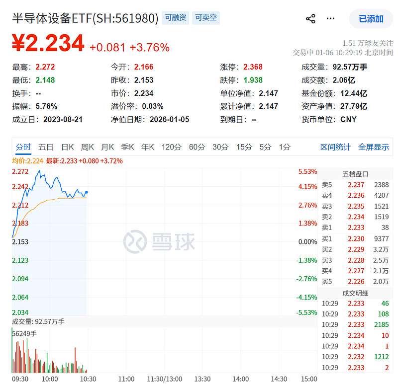 在存储涨价、晶圆厂扩产、国产替代以及产业链并购重组、IPO加速等多重推动下,上游设备需求核心受益。$半导体设备ETF(SH561980)$ 盘中一度涨超5%,权重股北方华创新高,中微公司复牌后接连大涨、拓荆科技、华海清科、中科飞测等多股拉升!