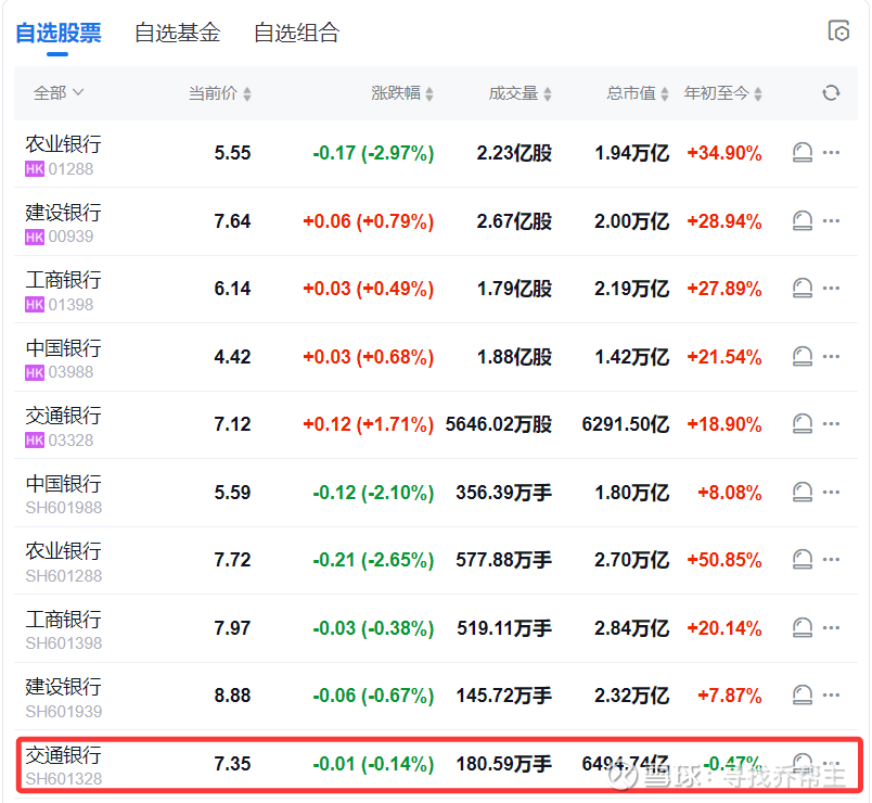 港仔交通银行年度涨幅为18.9%,大A年度涨幅至今负-0.47%!