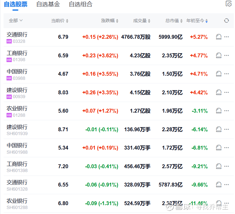 H股五大行暴涨,气势如虹!反观A股的惨遭人为打压,怎么不叫人气愤,想问候他。。。。。。