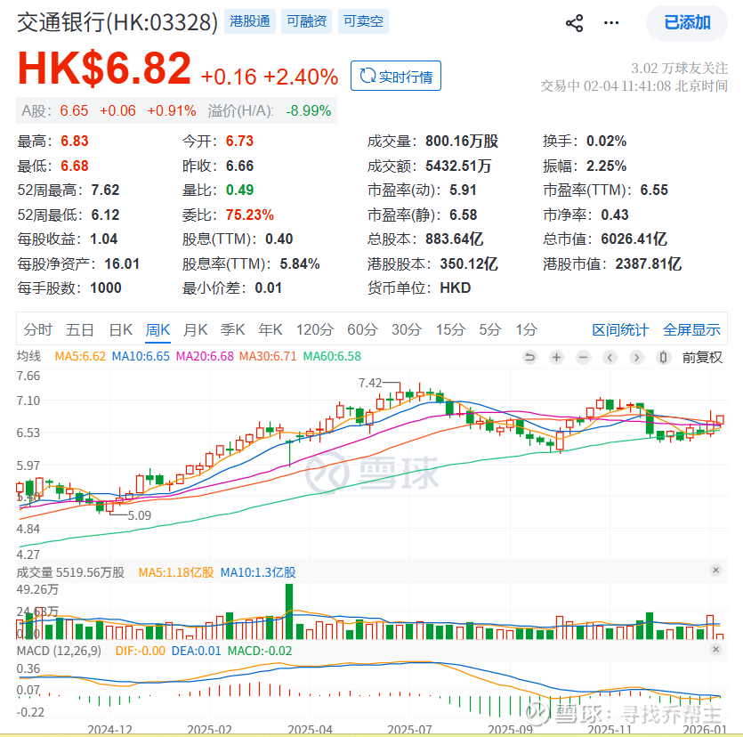 交通银行H股能对A股开始溢价,这你受得了吗?活久见啊 !