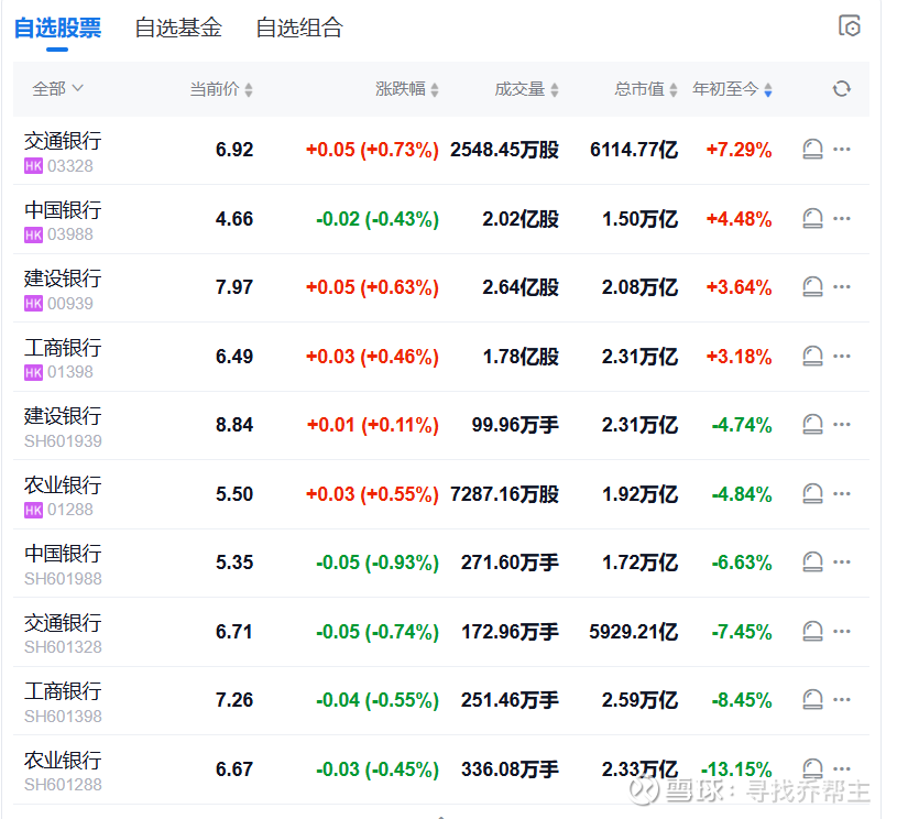 五大行H股交通银行年度涨幅遥遥领先,A股年度涨幅目前建行领先,但年度涨幅仍为负数!