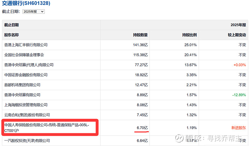 但是不要悲观,到了年报数据显示,上证50交易型开放式指数证券投资基金虽然完全退出了交通银行的前十大流通股东,但取而代之的是中国人寿的保险资金更大手笔的大笔买入了6.7亿股。