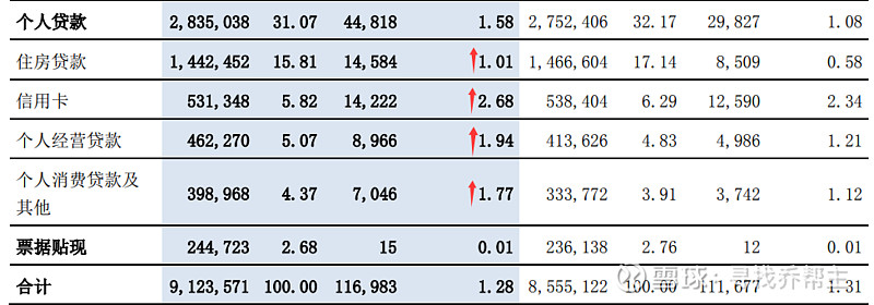 其中个人经营贷1.91,同比大幅上升73个基点,个人消费贷1.77,同比上升65个基点。而这两项的贷款占比也是同比大幅上升的,因此,交通银行逾期贷款率增长的势头看来还得继续啊!