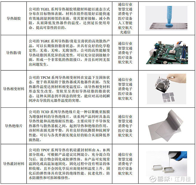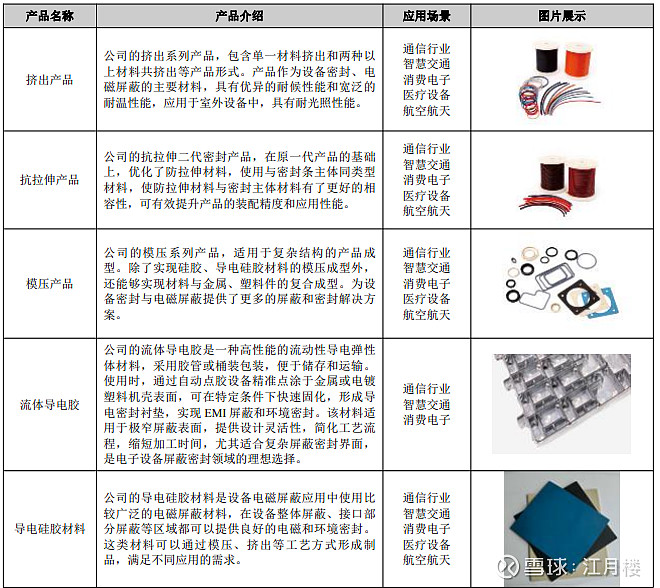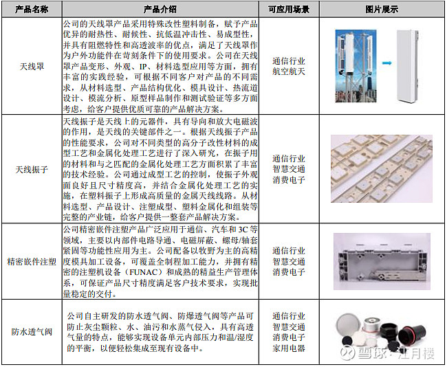 公司是一家高分子材料通信设备零部件供应商,主要为通信主设备厂商及其产业链上的其他通信设备厂商提供射频与透波防护器件、EMI 及 IP 防护器件和电子导热散热器件等用于移动通信基站设备内、外部的零部件产品,以及包括前期研发设计介入、中期产品开发、后期生产制造和最终产品验证在内的零部件整体解决方案。