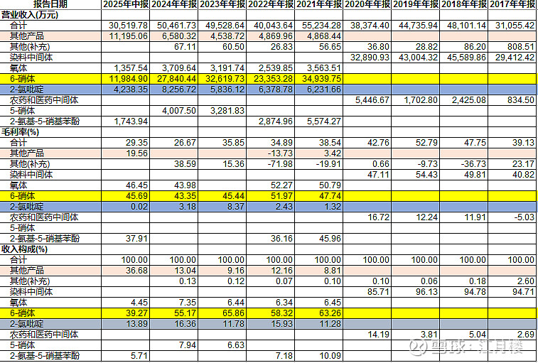公司的拳头产品其实是6-硝体,我们可以看到这个产品2021年最高做到3.5亿,但最近几年呈逐步下滑的态势,这是受到需求不足的影响。我们不是染料这个行业的,很难提前发现其周期性的爆发时点,其实拿不到相关的先手。