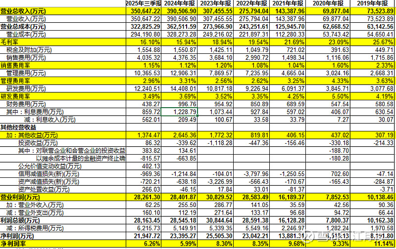 16%的毛利率,因为公司与下游客户共同参与研发,并进行认证。其客户粘性较强,销售费用相对较低,只有1%出头,管理费用控制在3%,研发费用3-4%。这样算下来16%的毛利,减去1%的销售费用,3%的管理费用,4%的研发费用,大概还有8%的空间,再加上财务费用及加加减减,基本上也就在6-7%的净利润率。挣的是个辛苦钱。