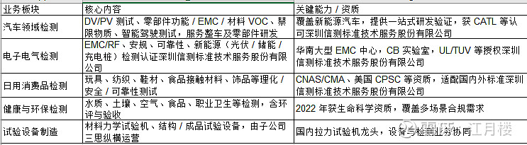 信测标准(300938)是第三方检测与试验设备一体化服务商,核心主业为检测服务 + 试验设备制造双轮驱动,聚焦汽车、电子电气、消费品、健康环保等领域,以 “检测 + 设备 + 研发” 协同提供全周期技术解决方案。以下为结构化拆解: